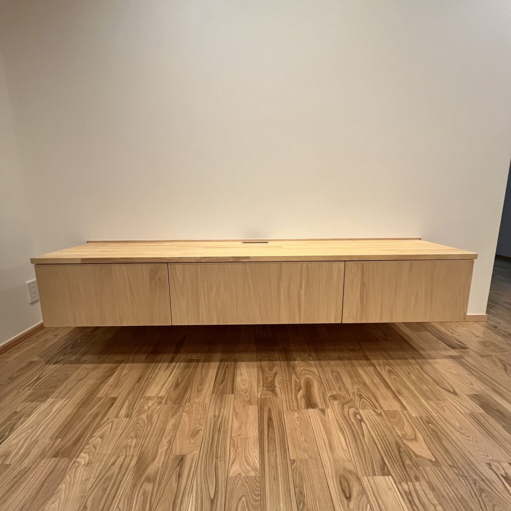 テレビボードを床から浮かせているようなデザインで作製いたしました。